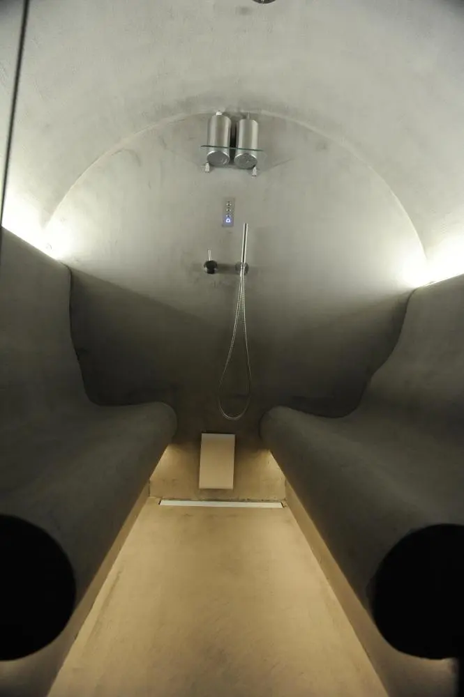In the sea climate cabin Soleum, finely atomized, diluted, non-iodised brine is sprayed – a real pinch of sea air, so to speak. The salt increases perspiration, detoxification and cleanses and cares for the skin.