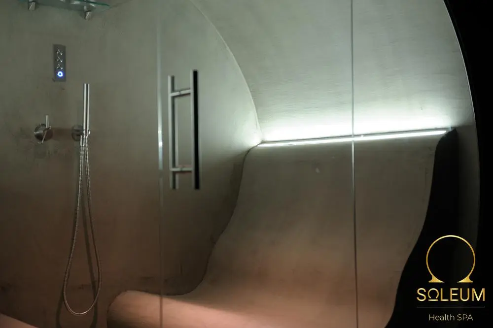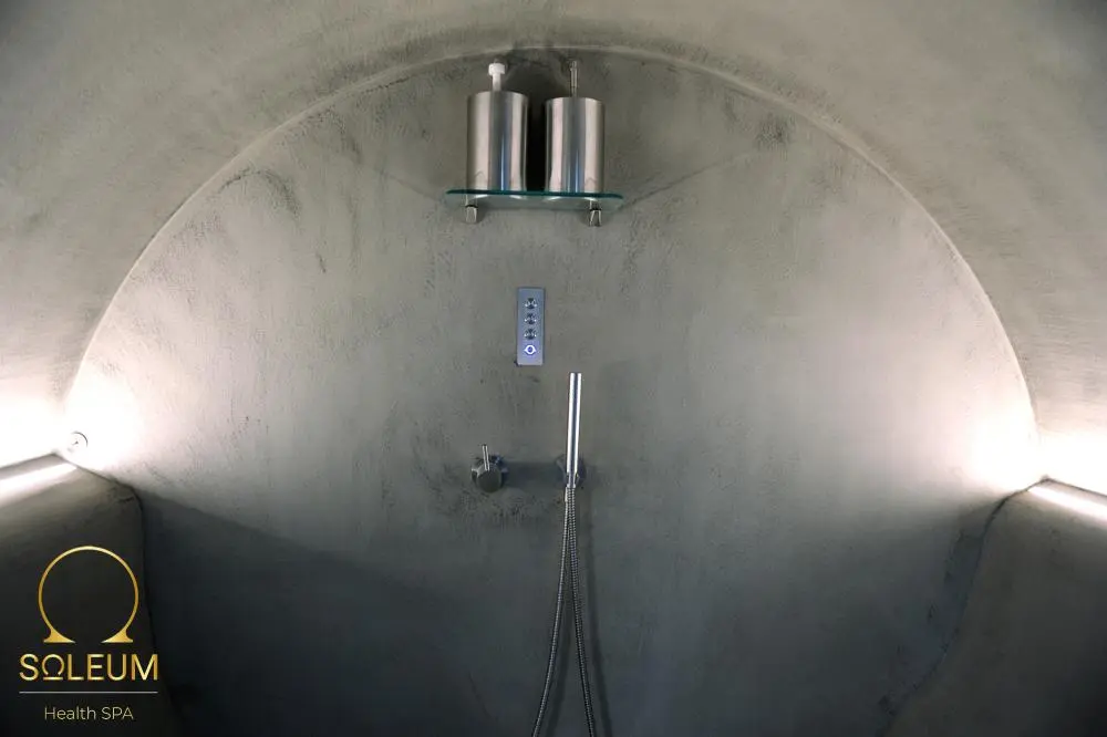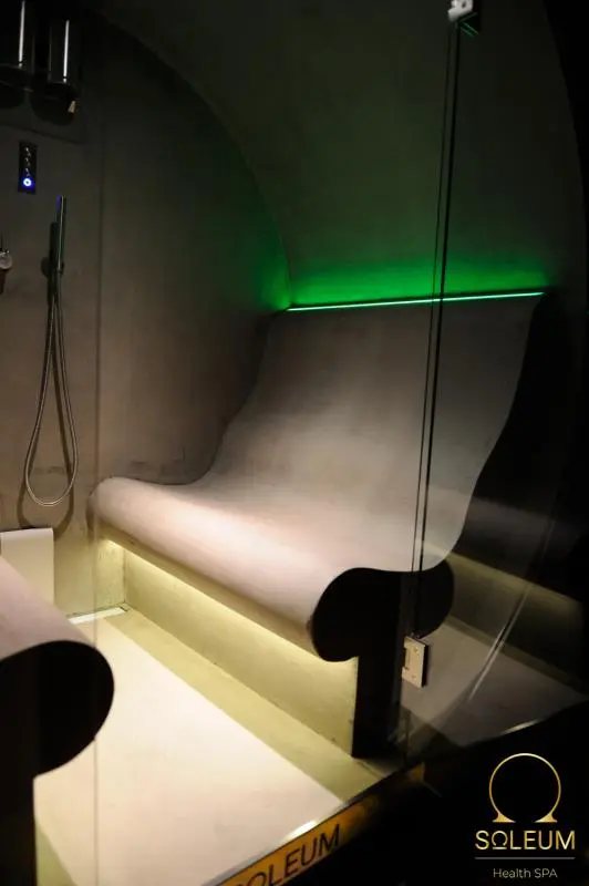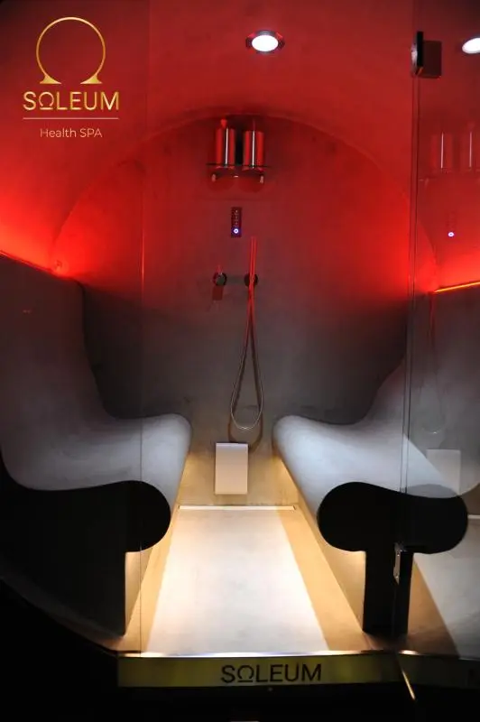 The SPA cabin can accommodate 4 people. It is a tepidarium, steam bath and SOLEUM (salt inhalation via a nebulizer) all in one.