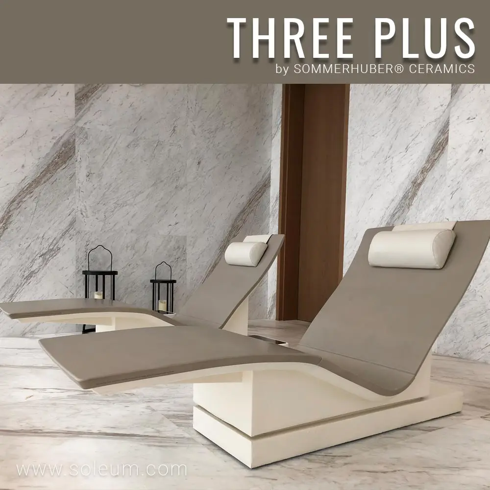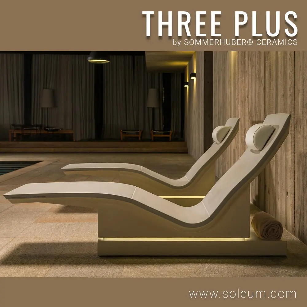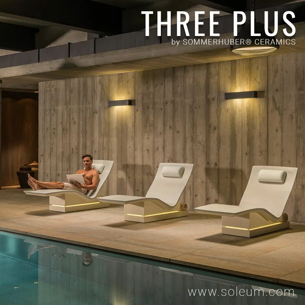 Der Lounger THREE PLUS vereint österreichische Handwerkskunst, Großformat-Keramik von SOMMERHUBER® und SOLEUM-Innovation zu einem unvergleichlichen Spa-Erlebnis – maßgeschneidert für Ihren Anspruch.