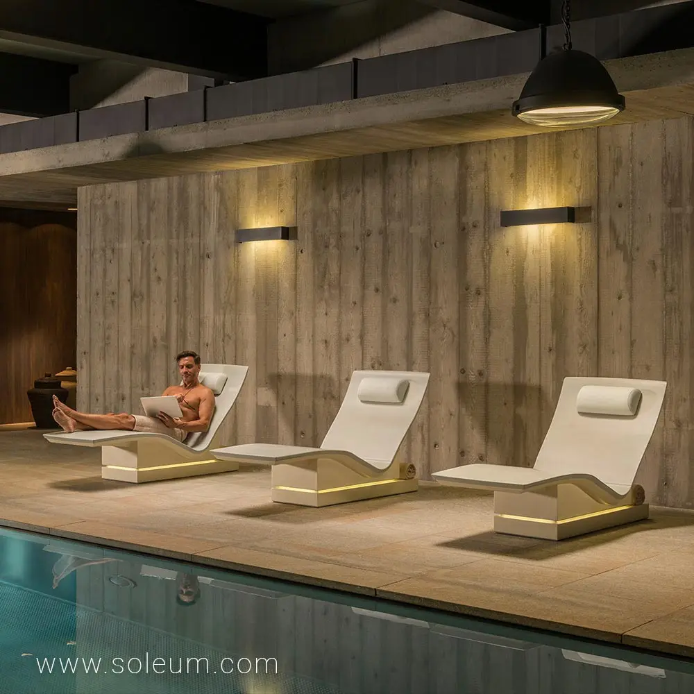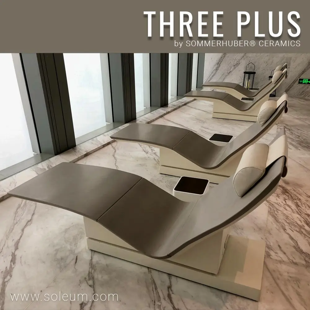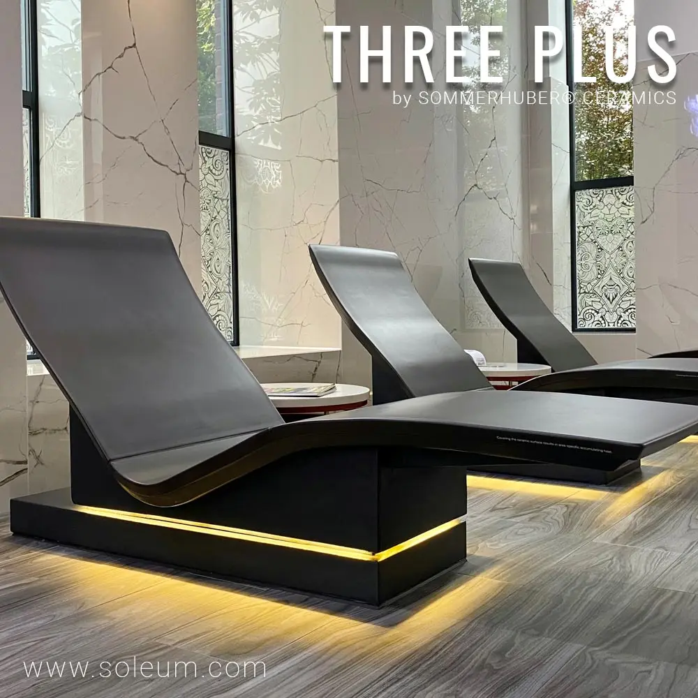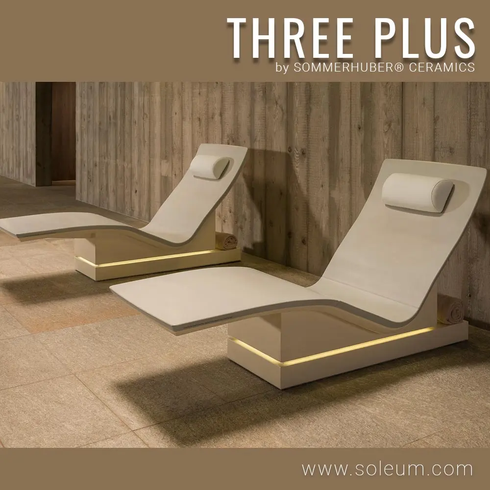 Der Lounger THREE PLUS vereint österreichische Handwerkskunst, Großformat-Keramik von SOMMERHUBER® und SOLEUM-Innovation zu einem unvergleichlichen Spa-Erlebnis – maßgeschneidert für Ihren Anspruch.