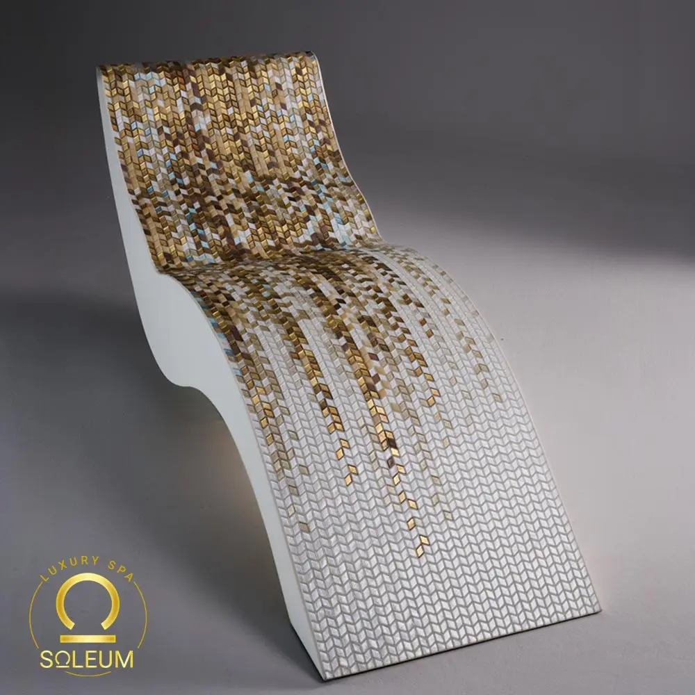 Wärmeliege: Custom mosaic daybed SICIS SALICE GOLD vereint Luxus, Innovation und Funktionalität – perfekt für Architekten, Luxusimmobilien, Yachten und exklusive Wellnessbereiche.